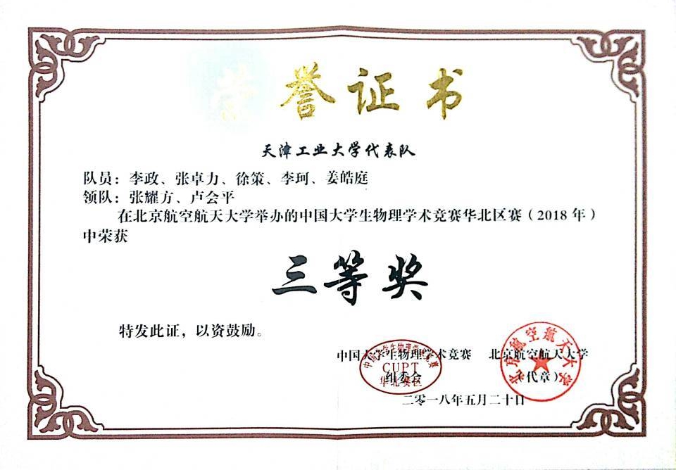 图1 2018年华北赛区三等奖