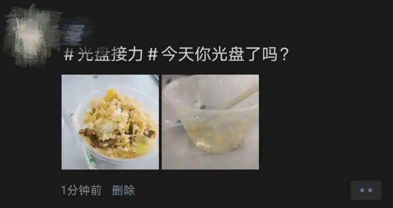 参与的同学纷纷晒出自己的“光盘”,并且在此次活动中体会节约带来的快乐与满足。