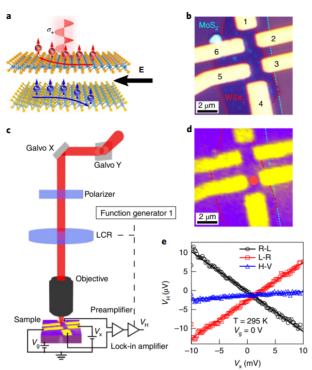 基于不同能谷的电子具有相反的贝里曲率而产生的谷霍尔效应是实现谷电子器件的重要途径之一。然而,已有的关于二维半导体材料谷霍尔效应的报道或受限于器件复杂微结构的加工要求,亦或受限于低温极端条件,这些都极大程度上限制了谷电子器件的实用化发展。鉴于此,我校物理学院马惠老师与新加坡南洋理工大学高炜博教授、清华大学物理系熊启华教授合作,通过设计过渡金属硫族化合物异质结构,利用圆偏振光操控不同能谷中的电子,实现了室温下工作的双极型谷电子晶体管,与此同时,他们还成功地利用栅压实现了谷霍尔电压的幅度和极性多维度调控。这一成果对于提高谷电子晶体管的开关比,实现更加复杂的谷电子逻辑电路具有十分重要的意义,进一步推进了谷电子器件的实用化进程。
