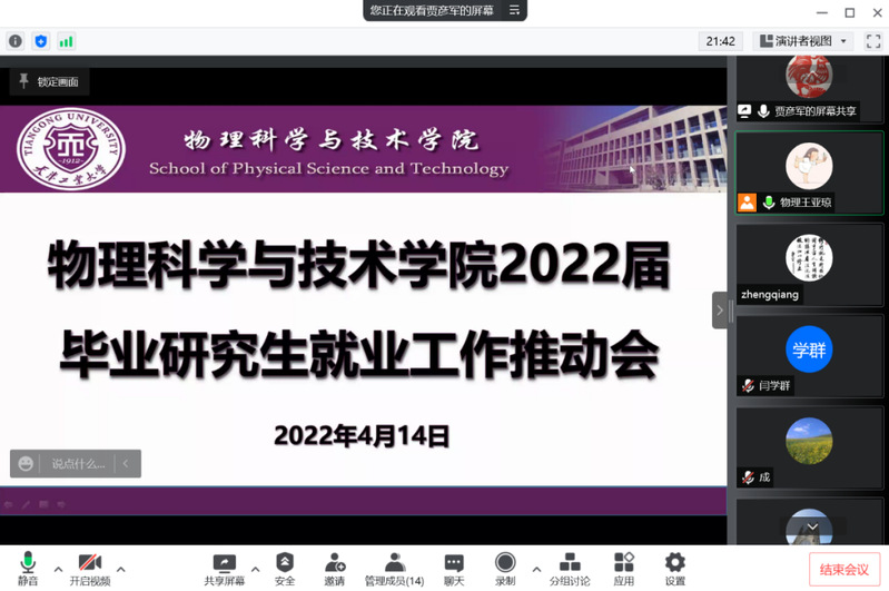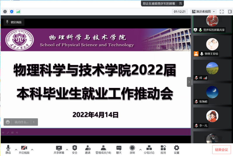 为认真贯彻习近平总书记重要指示精神和党中央、国务院“稳就业”“保就业”决策部署,落实教育部《关于做好2022届普通高校毕业生就业创业工作的通知》的具体工作要求,进一步加强疫情防控常态化下毕业生的就业指导与服务工作,确保毕业生更高质量更充分就业,4月14日,金年会jinnianhuicom在线分别召开2022届研究生及本科毕业生就业工作中期推动会,专题研究部署疫情形势下进一步加强2022届毕业生就业工作举措。学院领导班子、系室主任、毕业班研究生导师、班导师和全体辅导员出席本次会议,会议由学院党委副书记贾彦军主持。