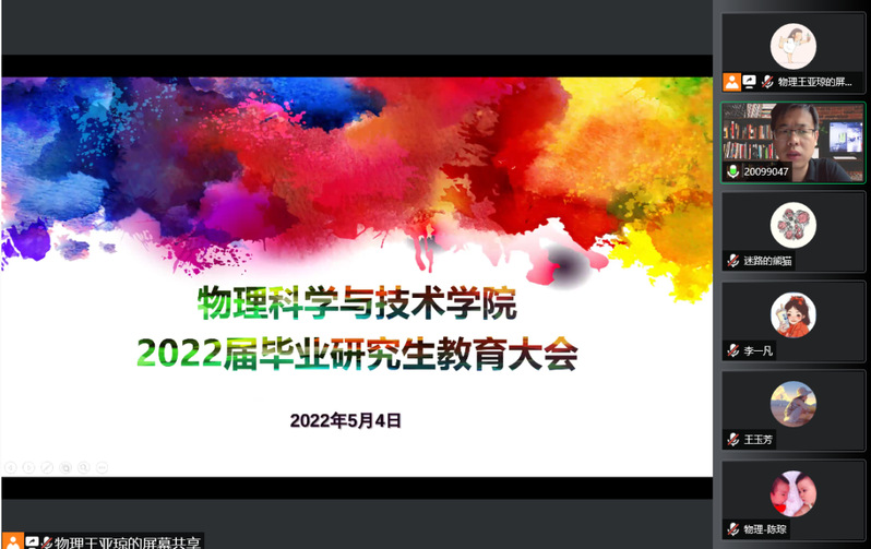 为进一步加强毕业生离校教育和毕业生党员的党性教育,2022年5月4日下午,金年会jinnianhuicom通过腾讯会议召开了2022届毕业研究生教育大会暨毕业研究生主题党课教育活动。学院班子全体成员、导师代表、办公室、科研办、学生办工作人员以及2022届全体毕业研究生参加了此次大会。会议由学院党委副书记贾彦军主持。