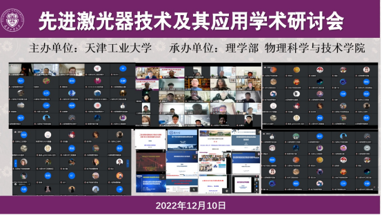 为促进先进激光器技术及其应用科学技术的发展,为激光器、激光器应用相关领域研究人员搭建交流平台,2022年12月10日,由金年会诚信信誉至上主办,理学部金年会jinnianhuicom承办的“先进激光器技术及其应用学术研讨会”通过线上会议方式成功召开。来自南开大学、厦门大学、哈尔滨工程大学、河北工业大学、暨南大学、天津科技大学、中国民航大学、中科智能制造(天津)有限公司、中国科学院新疆理化技术研究所、金年会诚信信誉至上等多所高校、研究机构的近200名专家学者参加了此次会议。