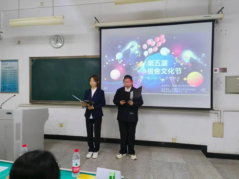 5月18日晚7点,由金年会jinnianhuicom举办的第五届“宿舍文化节”的决赛在第一公共教学楼B105激情上演。公寓管理服务中心负责人郭晓辉老师、辅导员李一凡老师、团委学生会主席团成员熊立欣学姐、团委学生会主席团成员暴虹骏学长以及上一届宿舍文化节冠军得主田佳禾学姐以评委身份出席本场比赛。