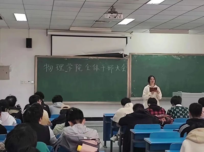 首先是王亚琼老师发言,王老师先是对同学们表达了亲切的问候,然后着重强调了本学期的入党以及推优工作的安排。紧接着王老师又向大家汇报了2019届同学的考研情况以及本年度的学院征兵情况,并鼓励大家提前规划,一战上岸。最后王老师告诫同学们一定要注意安全问题,谨防电信诈骗。